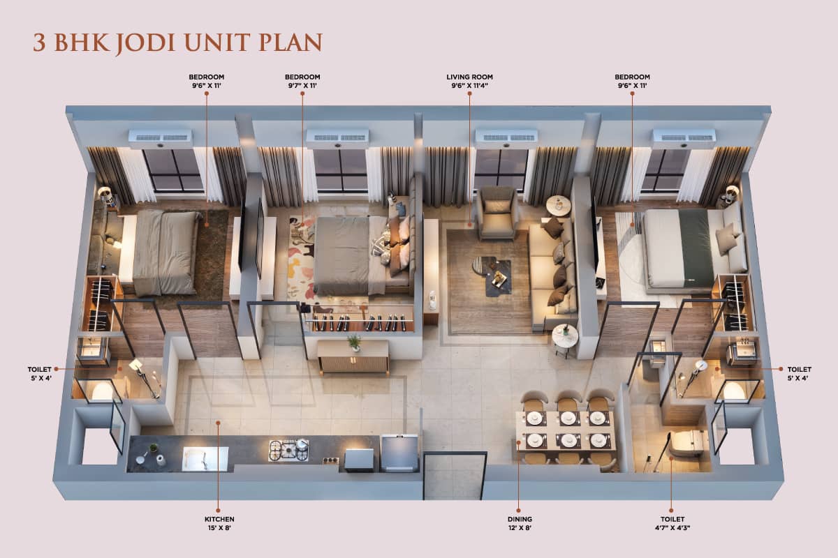 Air-Conditioned 1 & 3 BHK (Jodi) Apartments